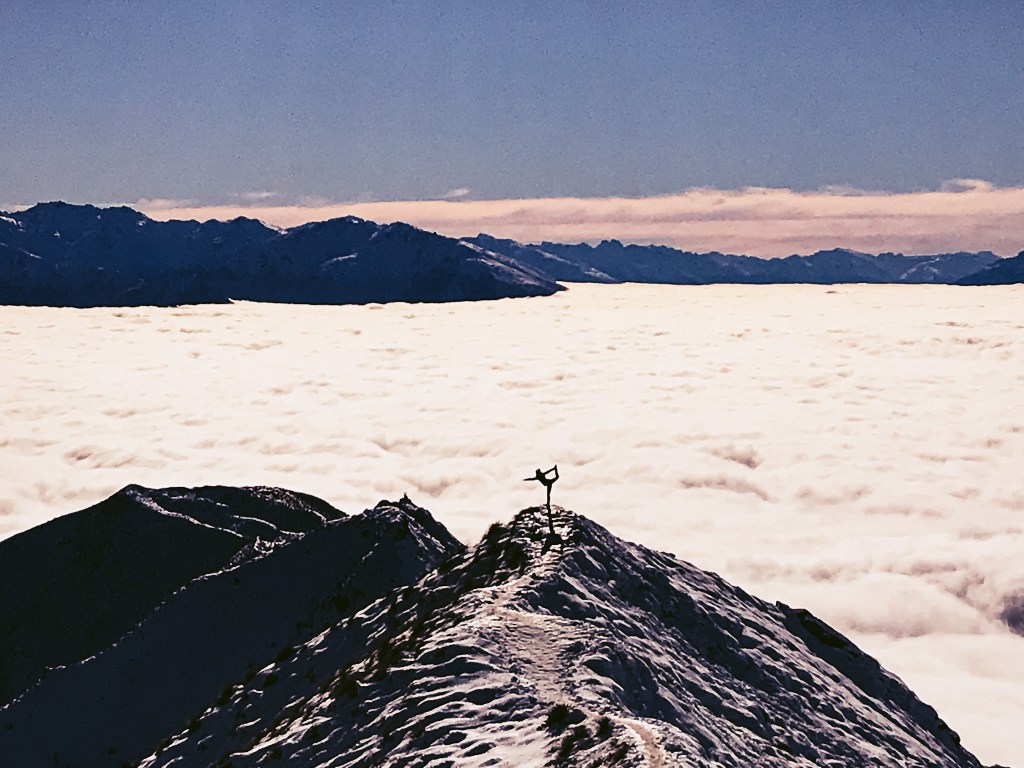 The moment everything’s been leading up to – special slot number one. There is no debate for me, the top of Roy’s Peak is my favourite place in New Zealand. It is about a 2 – 2,5h pretty steep hike to the top, so about a 5 – 6h round trip and it is worth every step. The later you head off, the more people will be there and the longer you’ll have to queue to get the popular Instagram Roy’s Peak shot. I’ve heard about great sunrise views from the peak but as I am not a great morning person and we’d already seen so many stunning sunrises, we walked up a bit after sunrise, but this was ideal for us. The views in the summer are very clear and Lake Wanaka is very visible, and the pictures look great…buuut our winter views were absolutely awesome, and I don’t use that term lightly. We hiked up and could see the clouds above us. Then we were walking through these clouds and it was not easy to see and actually kind of foggy and almost mystical. Finally, we emerged from those clouds and I couldn’t believe it. The world below was lost beneath this thick blanket of clouds and the mountain peaks were looking out into this beautifully coloured sky. It was a phenomenal experience, and this is the one hike I would always recommend to anyone visiting the South Island. In my opinion, this is very often an underrated spot in New Zealand. Make sure to check in at the visitor centre at least one day before going up to check that the conditions are ok and even if the conditions aren’t great on the first day, the view and hike is worth waiting a couple of days.