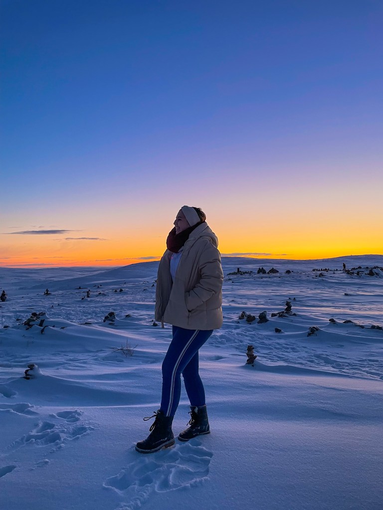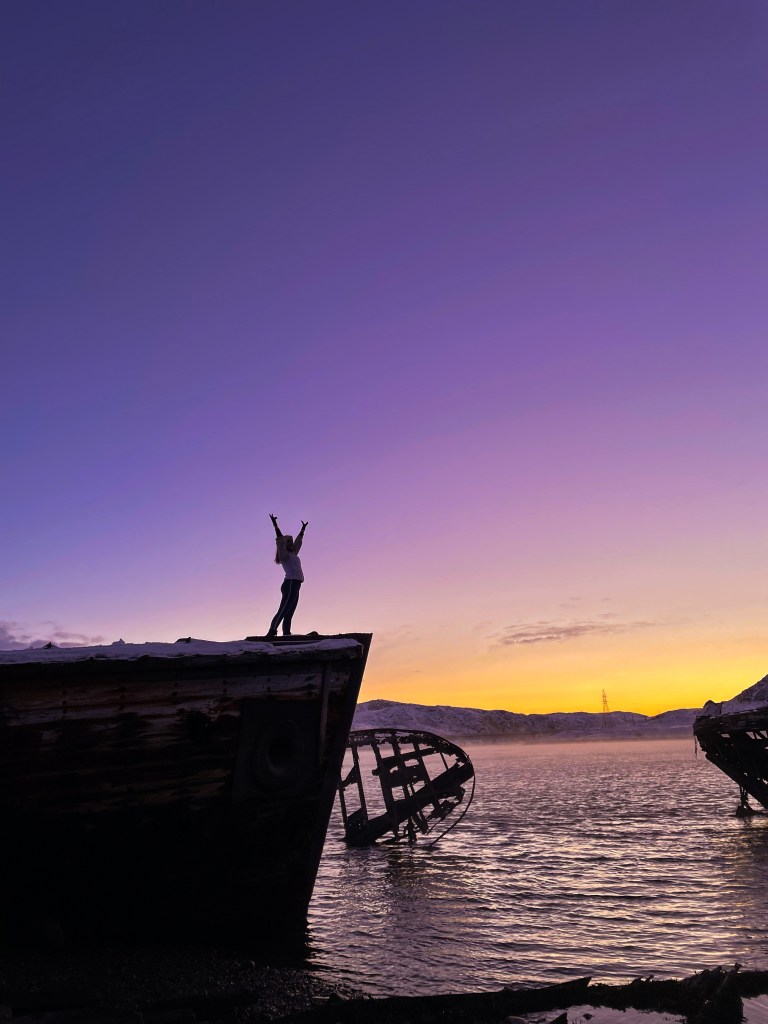The northern lights are of course the highlight of natural things in the arctic but they’re not the only thing that’s sure to take your breath away. A mentioned bucket list travel item you can do this far in the north is to touch the arctic ocean. We took a tour to Teriberka to do so and it was fantastic. There’s also a great beach area you can visit with a swing and even a ship wreck. The general scenery all around the area and on the drives to and from the different places you’re visiting is stunning. The view tends to be a beautiful sunset and amazing arctic tundra covered with a white blanket. The horizon seems to change colour every half hour and you feel like you’re looking at a post card landscape almost too surreal to be true. We even got to see a frozen waterfall. Which was even more amazing when you walked a bit upstream because the outer layer was completely frozen over and thick enough to stand on but you could see the water clearly running underneath. Honestly, I don’t think anyone can believe how breathtaking this landscape is until they’ve actually witness it themselves.