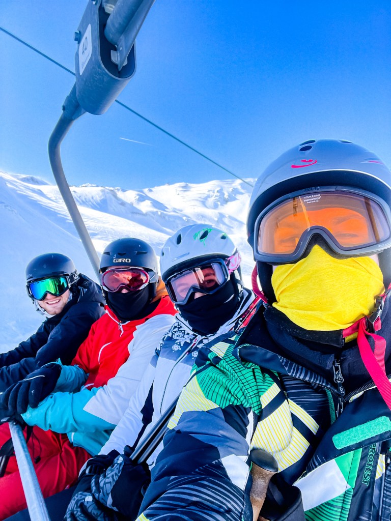 One of these is a bonus and the other a kind of saddening but hygienic accessory. When it’s cold outside, your skin can get much dryer than usual. It also doesn’t help that you’ll be sweating a lot in the cold as well. That’s why it can be nice to have some body lotion with you. Particularly if you’re staying somewhere overnight. The hygiene mask, often FFP-2 mask is a necessary or mandatory accessory that you’ll need to take with you when skiing at the moment. You don’t have to wear it all the time but some places will ask you to wear it on the lifts, in the gondola and when visiting the huts. I found it really handy to tie the two ends of the mask together around my head, put the mask on under my helmet and then just pull it up and down depending on when I needed it.